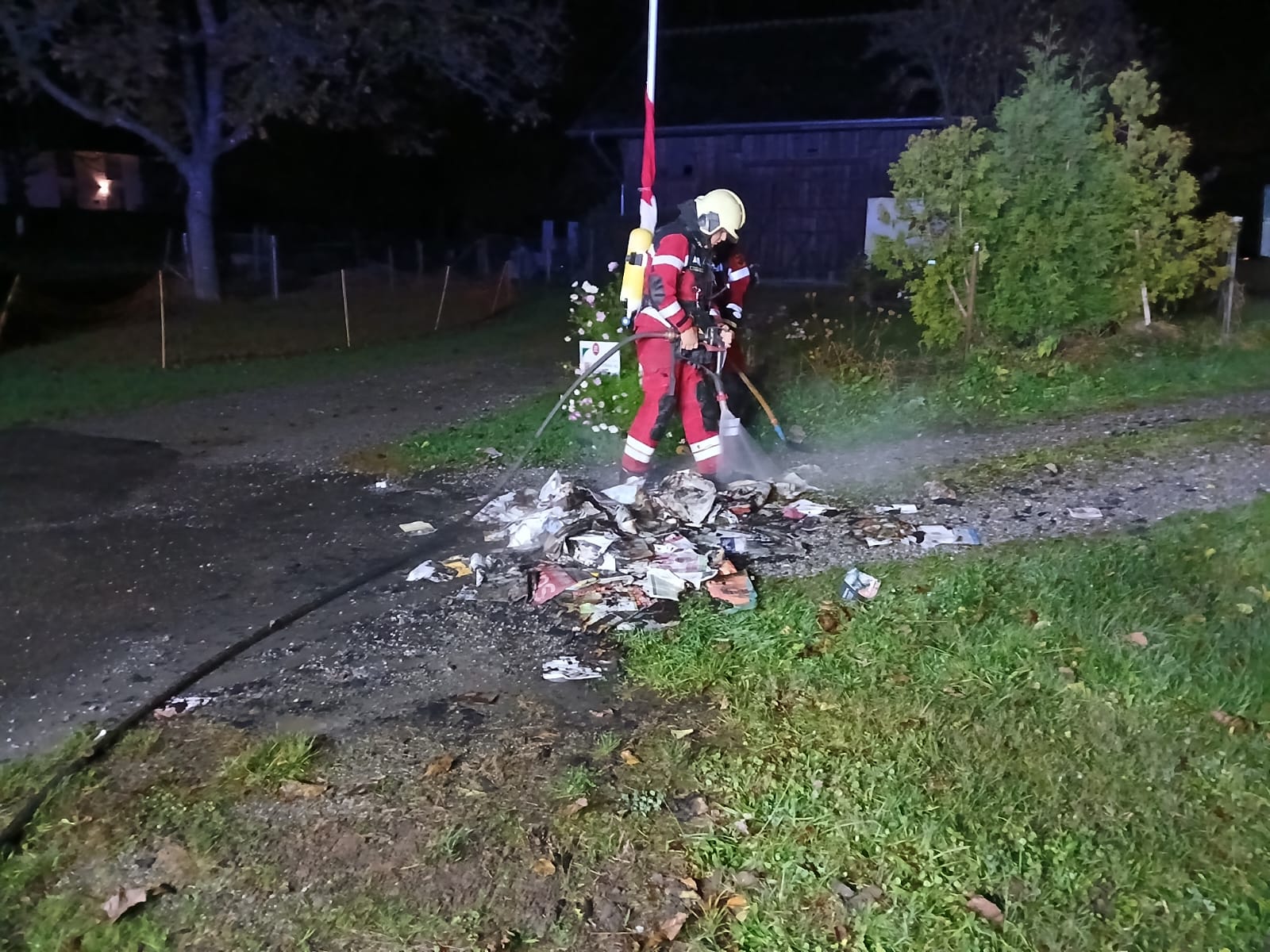 Am 24.10.2025 wurde die Feuerwehr alarmiert, weil ein Papierhaufen gebrannt hat. Die Ursache ist noch unklar.